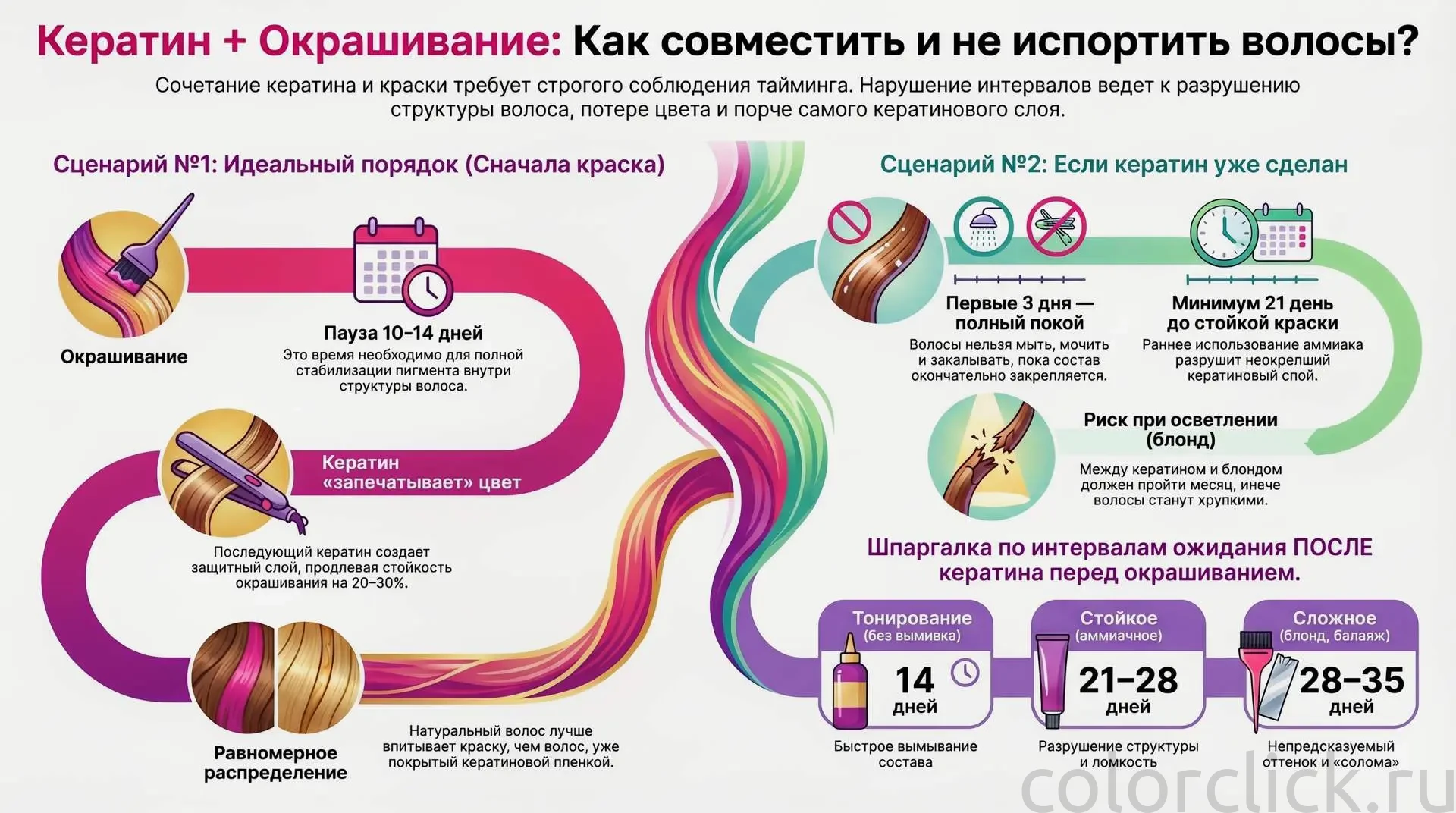Если вы планируете кератин и окрашивание, не полагайтесь на стандартные рекомендации. Спросите мастера конкретно: